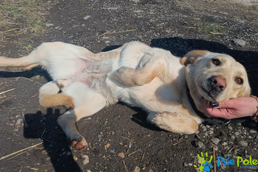 W warunkach schroniskowych dogaduje się z innymi pieskami.