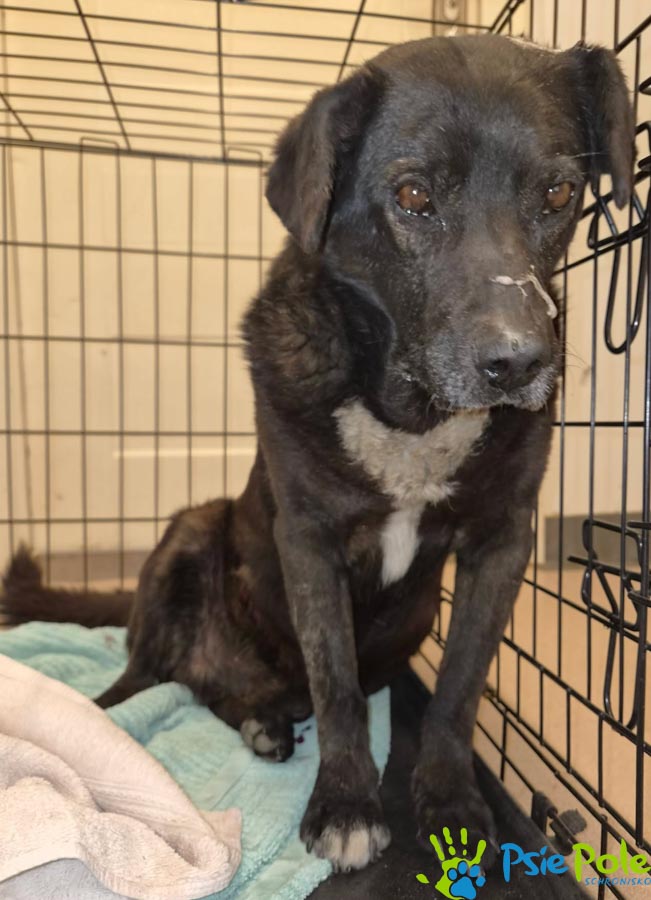 Psiak trafił do nas po wypadku komunikacyjnym.