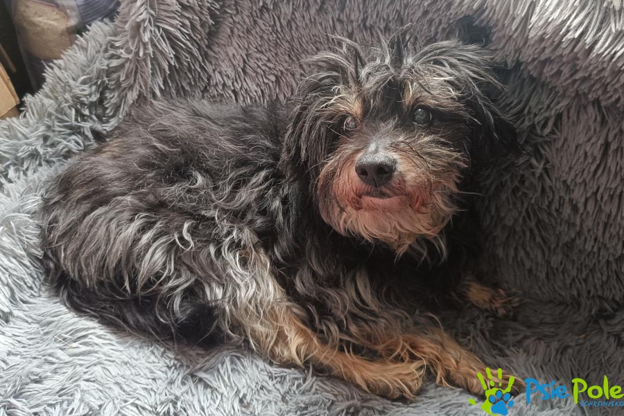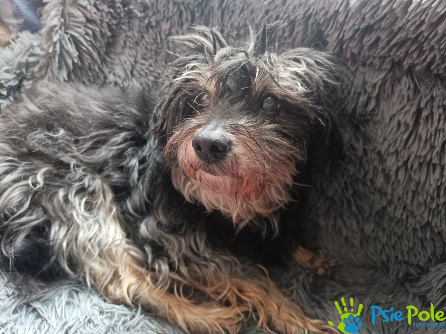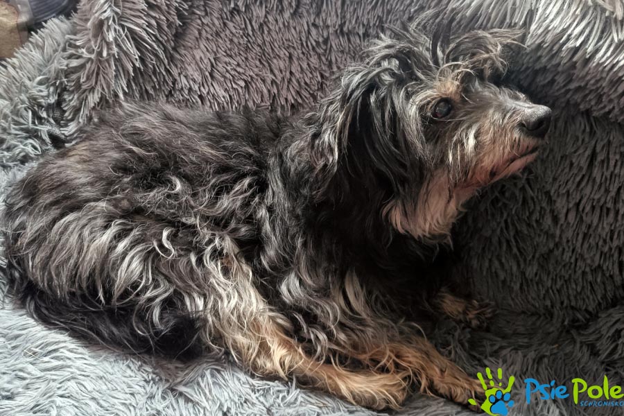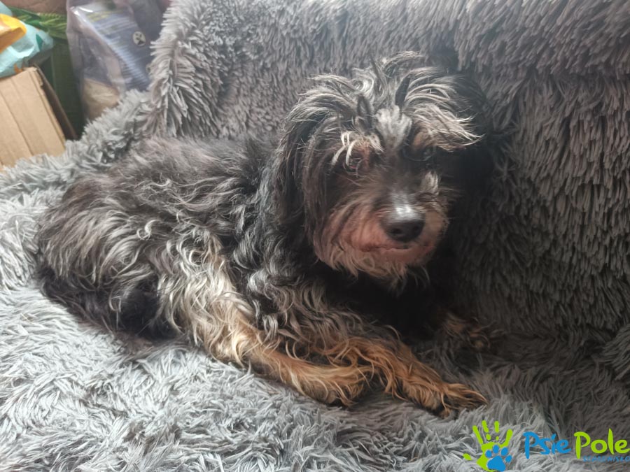 Suczka trafiła do nas w wieku ok. 12 lat, waży ok. 8 kg.