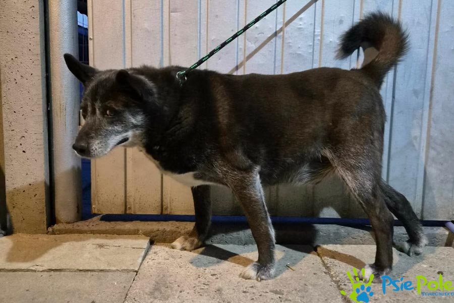 Psiak trafił do nas w wieku +15 lat, waży ok. 24 kg.