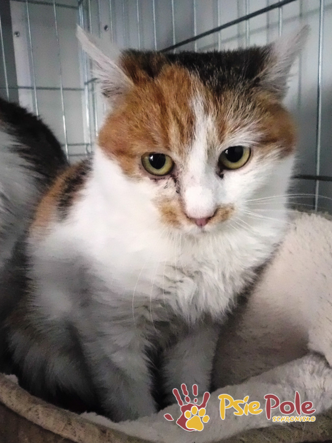 Najstarsza kotka – Frygia – ma około 1,5-2 lata. Jest najsilniejsza z kotków. Także przeziębiona, ale w lepszej kondycji. Kotka waży 3.3 kg. Na razie jest trochę nieufna.